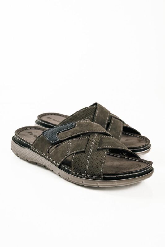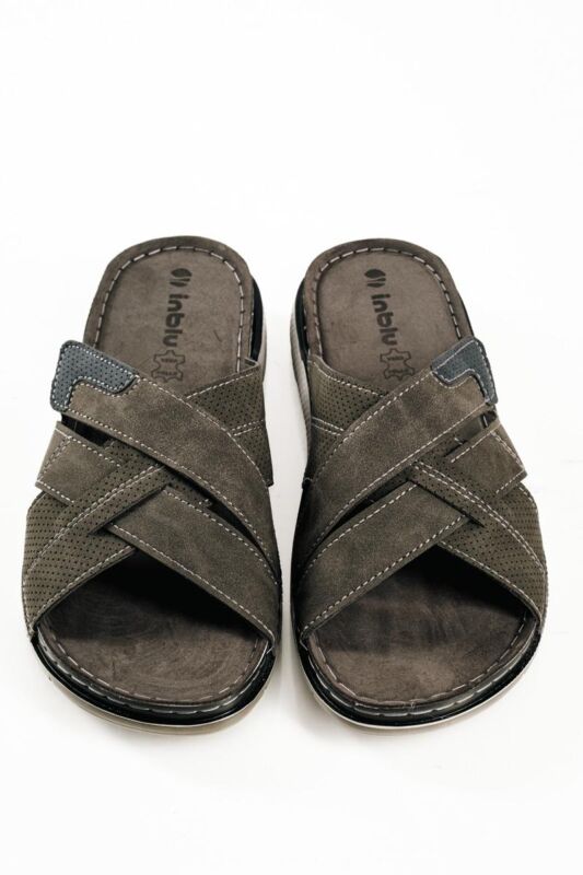 Ανδρική, ανατομική δερμάτινη παντόφλα Inblu VI270100 Γκρι χρώμα