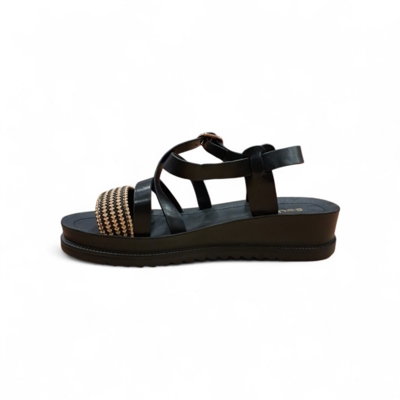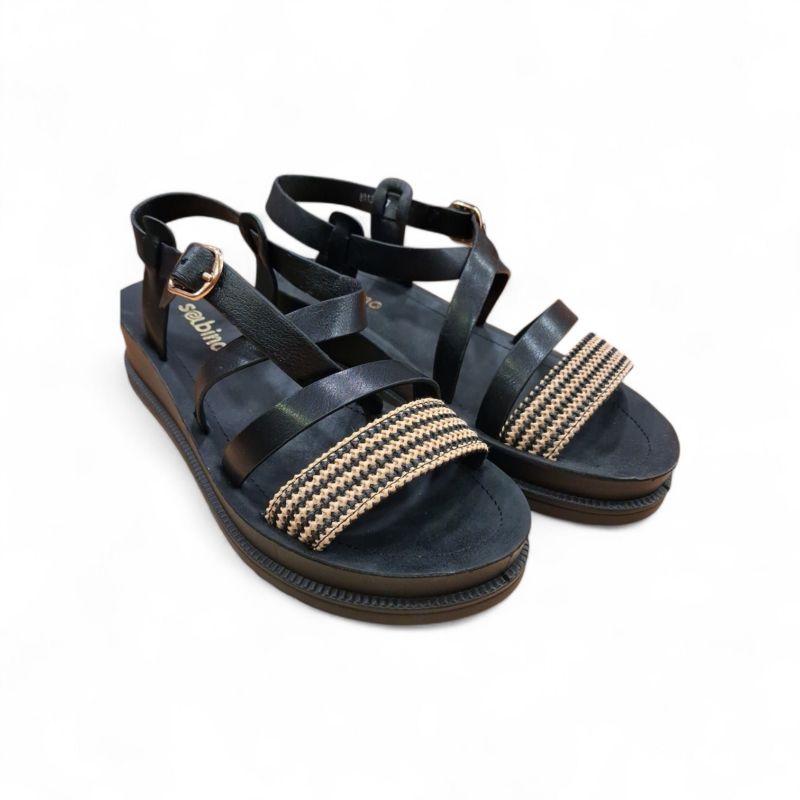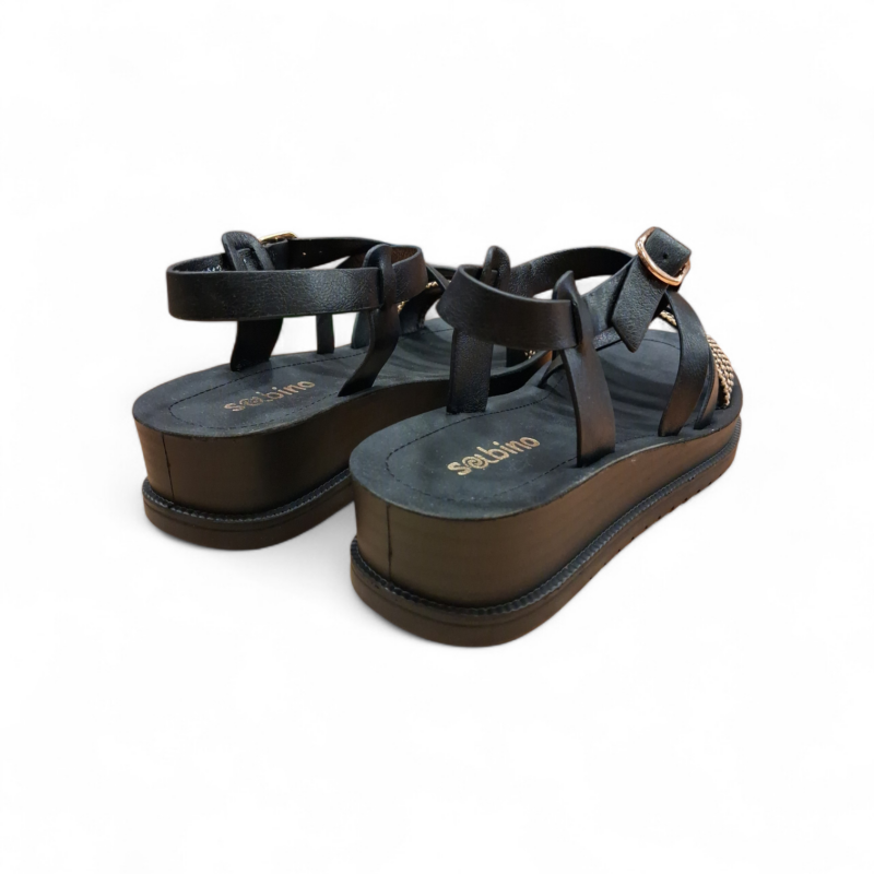 Οι μαύρες πλατφόρμες χιαστί λουράκι της Sabino είναι η ιδανική επιλογή για φετινές καλοκαιρινές εμφανίσεις. Με τη μοναδική σχεδίαση του λουριού που δένει γύρω από τον αστράγαλο, προσφέρουν στήριξη και κομψότητα σε κάθε σας βήμα. Το συνδυασμό υλικών προσθέτει χαρακτήρα και στιλ, κάνοντάς τες ιδανικές για μια βραδινή έξοδο ή μια βόλτα στην πόλη.